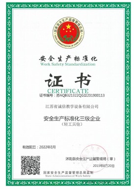 江蘇省誠信教學(xué)設(shè)備有限公司成立于2003年,是一家專注教學(xué)設(shè)備研究開發(fā)、生產(chǎn)制造、銷售服務(wù)為一體的綜合性教育、服務(wù)型企業(yè),是江蘇省教育設(shè)備行業(yè)協(xié)會(huì)會(huì)員單位、中國教育裝備行業(yè)協(xié)會(huì)會(huì)員單位,公司先后通過ISO9001國際質(zhì)量管理體系認(rèn)證、IS14001國際環(huán)境管理體系認(rèn)證、OHSAS18001職業(yè)健康安全管理體系認(rèn)證。數(shù)十年的激勵(lì)前行鑄就企業(yè)優(yōu)質(zhì)的產(chǎn)品品質(zhì)和服務(wù)質(zhì)量。